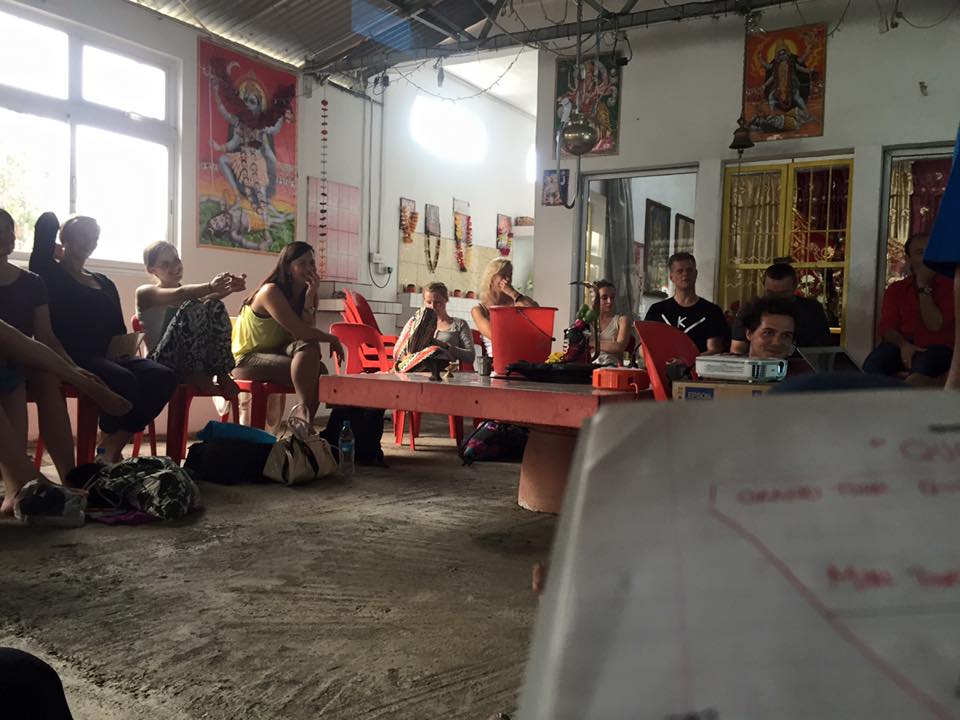 After having lunch at the street tent where we are regular customers by now, we also brought our daily visit to the local beach during lunch break, and be back ready for classes at two o’clock. Did I mention already that we have our classes at a local Hindu Temple?! It is a very different and interesting location to have your classes I guess, and it is very hospitable of the villagers to put the temple available for our use, I think. The only compromise we have to make in return, is behave according to the Hindu rules: so no food and drinks in the temple, and always cover your body enough, so no short shorts and short tops… Guess I did pack my suitcase a little bit inappropriate for this trip, but anyway! 😛