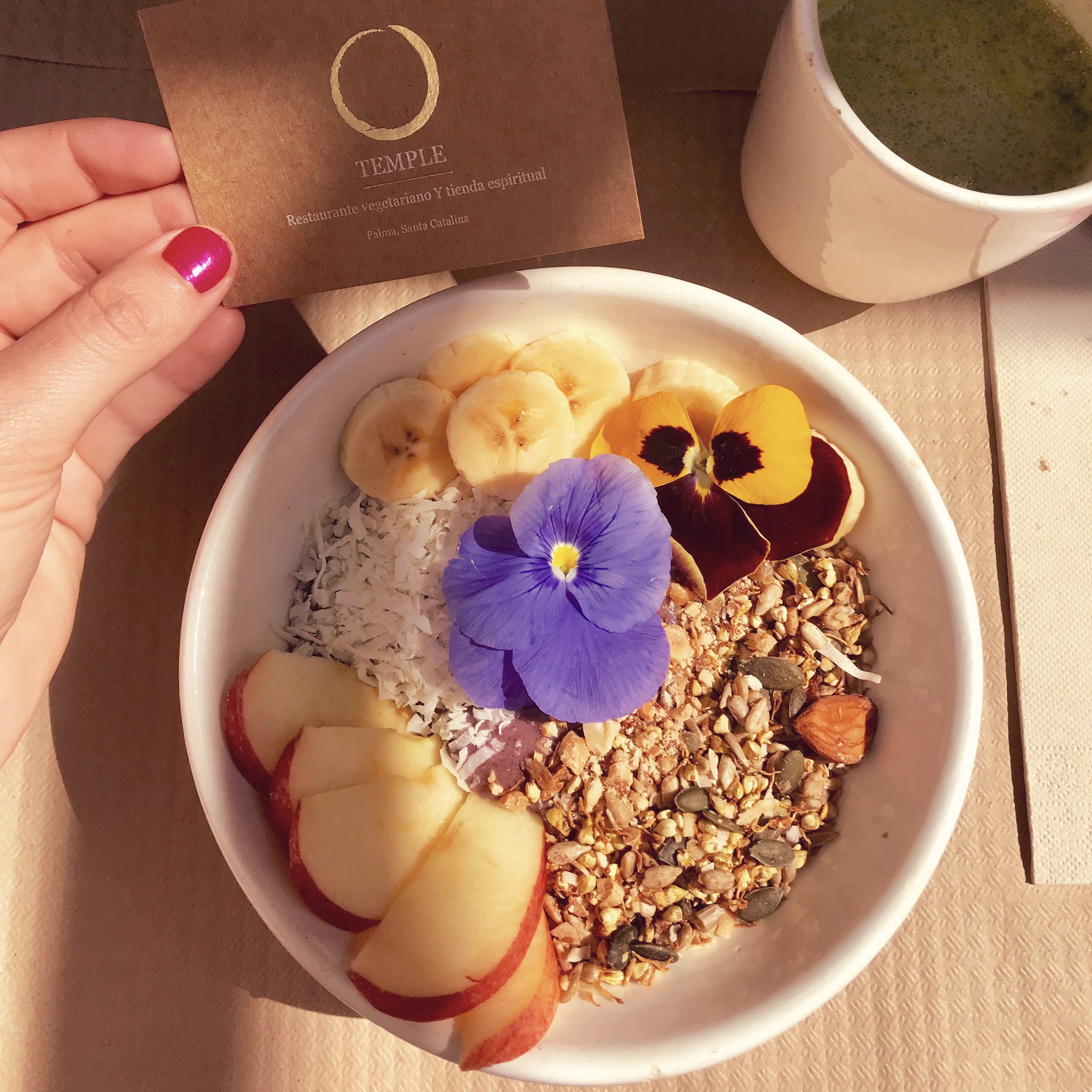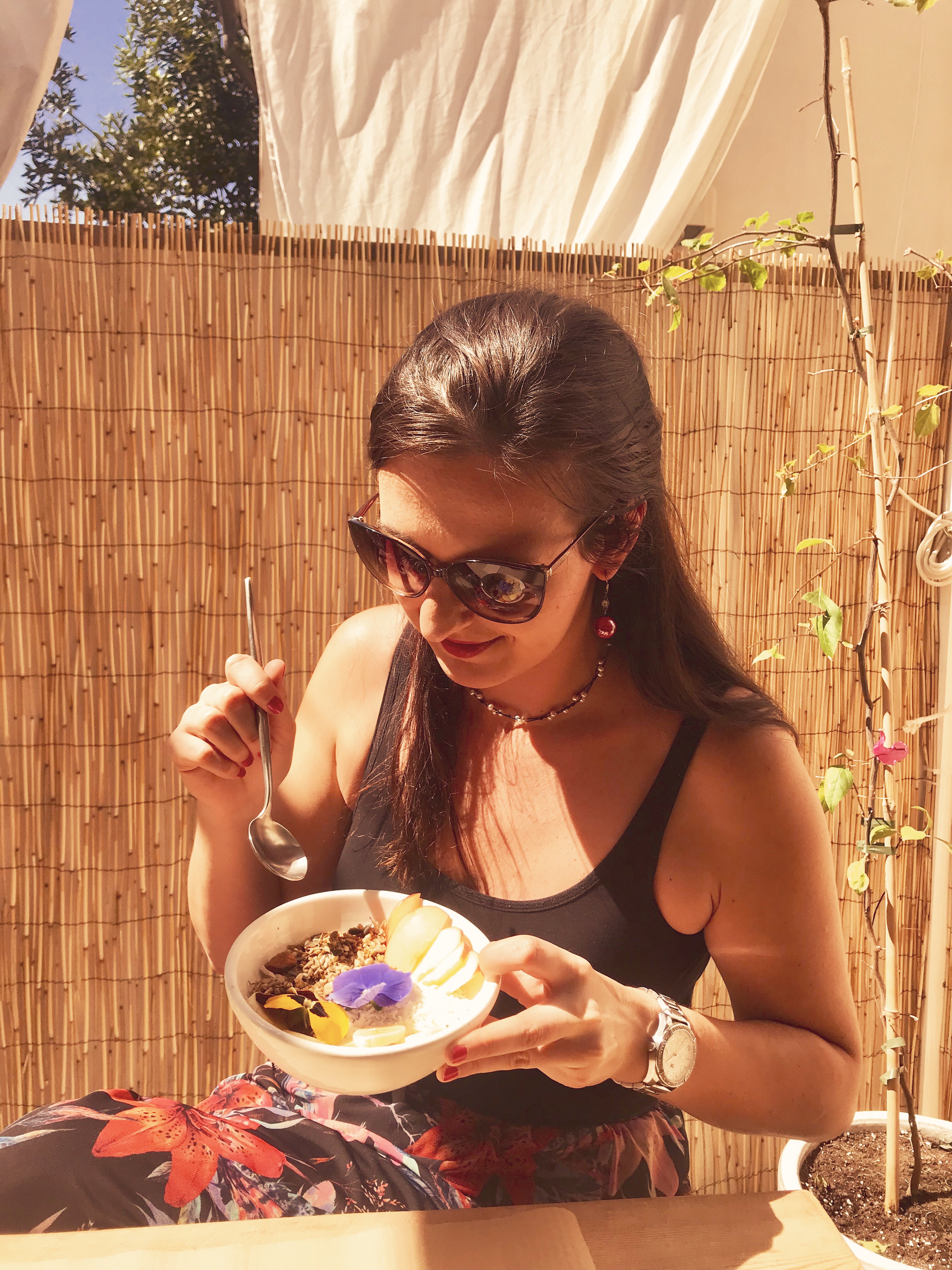 On their small but Ibiza-white-style terrace, I enjoyed my Acai Smoothie Bowl (with you-can-eat-me violet flower). It was delicious and made me instant zen. Namaste!